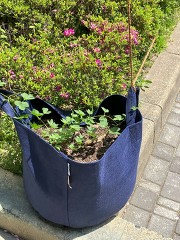 もうひとつの青袋はかわいい芽をだしたばかりです。